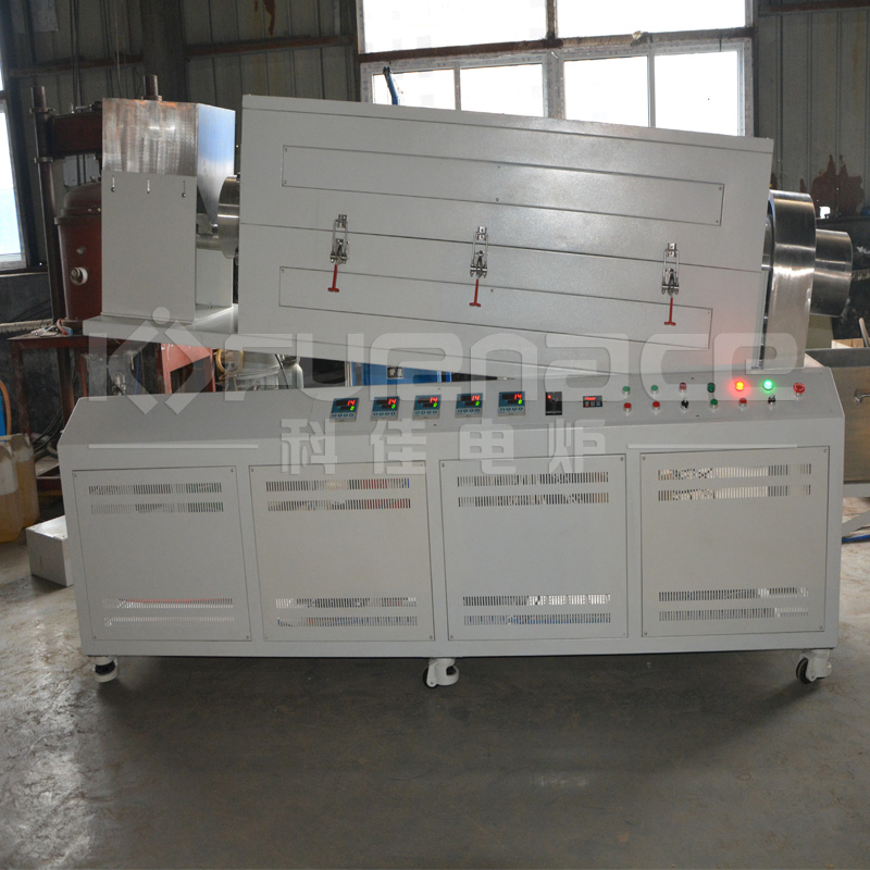 該大口徑傾斜旋轉管式爐內含五溫加熱區,Ф280 mm OD316L不銹鋼管。 加熱速率為0-20℃/min,建議0~10℃/min。 這種旋轉斜管式爐是專門為無機化合物的燒結而設計的。 如礦物顆粒和電池材料,具有更好的均勻性。 科嘉電爐公司提供1年有限保修(加熱元件和莫來石管等易耗件不在保修范圍內)。 可根據您的需要定制,并免費設計、免費安裝培訓,歡迎來參觀咨詢。